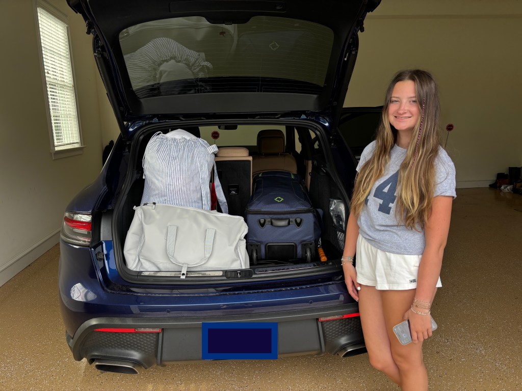 Of course, all that planning added up to a serious packing situation. I used a hanging bag with each outfit on the same hanger to stay organized. And then there were the dorm supplies that I needed. Disinfectant wipes to clean down our dorm room and bathroom was a must. Extra toilet paper, a fan and flip flops for showering were a must and added to many bags on move in day. But as we waited on line to check in, I noticed that others had even more bags than I did. It felt like the start of something exciting, like I was stepping into the start of my fashion story. But my jitters quickly subsided when the skies opened up and the rain came pouring down on everyone in line. We laughed and all managed to get ourselves, and our luggage, into the lobby quickly.